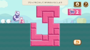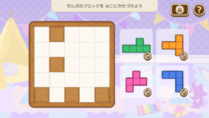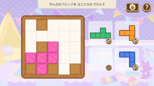 これはエレズンのおかたづけとかウボンゴに似たゲームだけど、こっちの方が難しい。安定した解き方は分からないけど、なんとなく簡単な図形から処理する方が上手く行くケースが多い気がする