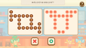 上図のように4つで1セットで地道に数えてる。そのせいでクリアはできるけど、あんまり成績は伸びてない。たぶん差があっても1〜3程度なので慣れてきたら頭の中で左から右の形に変形させて、比較すれれば良いかもだけど、いまだに慣れないから地道に数えてる