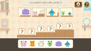 赤ダルマッカと白ダルマッカが同じ動きするから指定の色のところに運ぶゲーム。