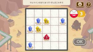 この前のアップデートで追加されたゲーム。マインスイーパーみたいなゲーム。マインスイーパーの爆弾を特定する感じのやつ。まだ出たばっかりでレベル9になってないので最高レベルでどのくらいまで難しくなるか不明。