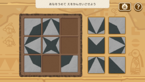 この前のアップデートで追加されたゲーム。左の図形を右の図形に合うよう回転させたり、裏返したりして穴に落とし込むゲーム
