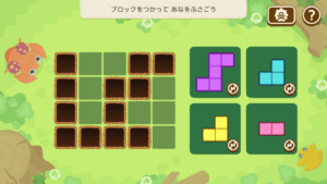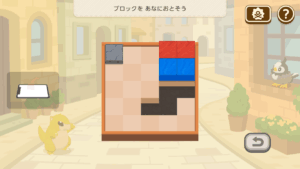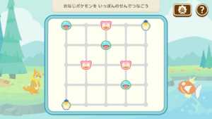 この前追加されたゲーム。ゼニガメの水路を作るゲームと基本的に同じ。好きなところにおける分こっちの方が簡単かも?
