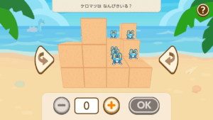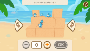 見えてる青のボックスと見えてないオレンジのボックスがあり、見えてないボックスを数えるゲーム。
