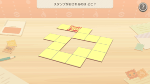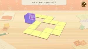 サイコロ状のスタンプを転がして、スタンプが押される場所を指定するゲーム。