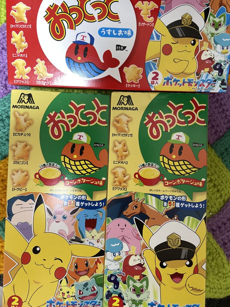 ここしばらく夏ごろにポケモンおっとっとが出ているのをご存じでしょうか。おっとっとはあのお菓子のおっとっとです。ポケモンのパッケージになっているだけでなく、ポケモンの形をしたおっとっとも中に入っているという商品です。以前は映画と連動して映画に出てきたポケモンの形がおっとっとになっていましたが、今はゲームやアニメと連動して御三家ポケモンの形やテラパゴスの形などが登場しています。