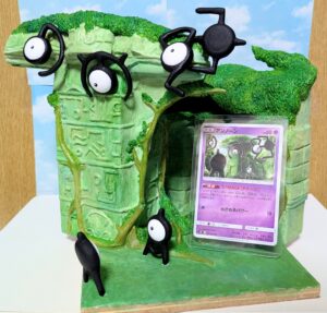 カードイラストとアンノーンの位置がちょっと違うのはご愛嬌。支柱を立てるかテグス糸で吊るすかして位置を合わせる案もあったものの、それはそれで見映えが悪くなりそうなので妥協しました…。