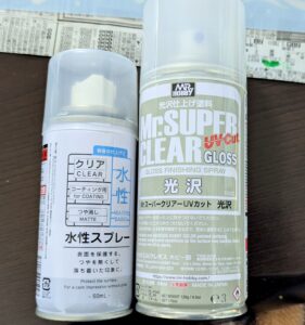 背景にはツヤ消しニス、アンノーンには光沢ニスをスプレーしました。ツヤ消しの方はダイソーで買ったはず。光沢の方はGSIクレオスのちょっといいヤツ。締め切り前日に持ってないことに気付いて買いに走りました。