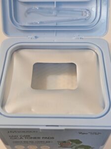 拭き取り化粧水をしみこませたシートが箱に入っていて、1枚ずつ取り出して使うアイテム。素手で取り出すと「次の1枚」に雑菌が付着する可能性があるから、ちゃんとフタ裏にピンセットもついてる。CICAは植物から抽出される成分だから、フシギダネが描かれてるのは納得。